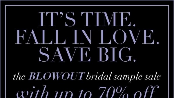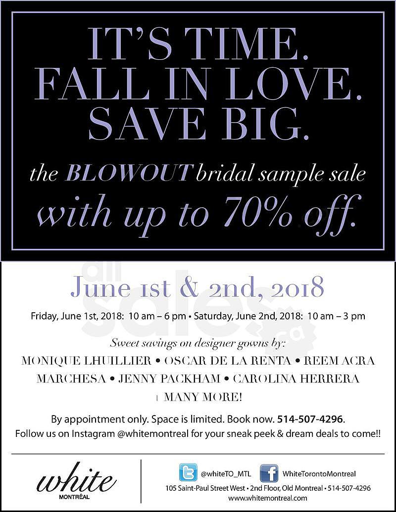 It is blowout bridal sample sale in Montreal on June 1st and 2nd, 2018! Get up to 70% off at White Toronto on Monique Lhullier, Oscar de la Renta, Jenny Packham, Marchesa, Carolina Herrera and much more!