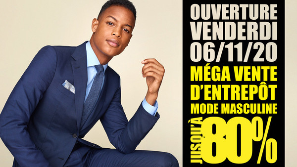 Huge men's fashion warehouse sale starting November 6, 2020! Save up to 80% off on stylish clothing for men. Suits from $49.99, tuxedos from $79.99, blazers from $39.99, shirts from $39.99, Point Zero winter coats at $99.99!