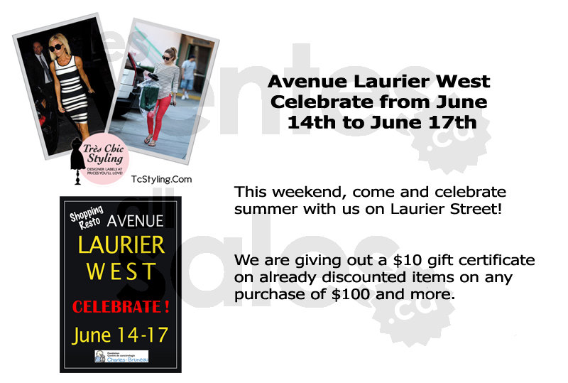 Avenue Laurier West is celebrating from June 14 to June 17! For the occasion, we are giving out a gift-certificate with purchase. New shipment of designers clothes and accessories prices starting at $25: dresses, jeans, tops, tunics, scarves, sarong, swimwear, jewelry & more.