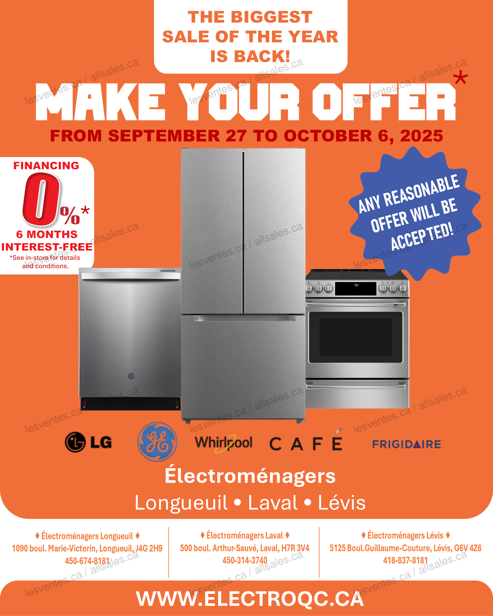 | Address | Électromenagers Laval - 500 Boulevard Arthur-Sauvé, Laval (Québec) H7R 3V4 Canada