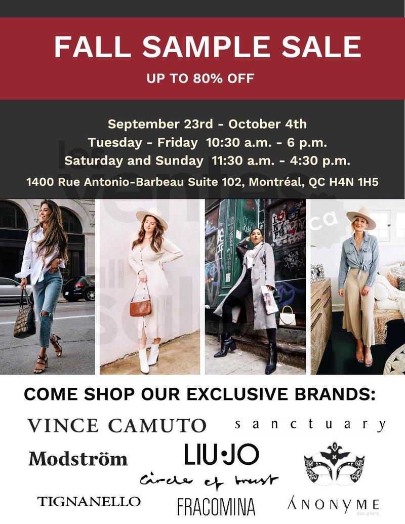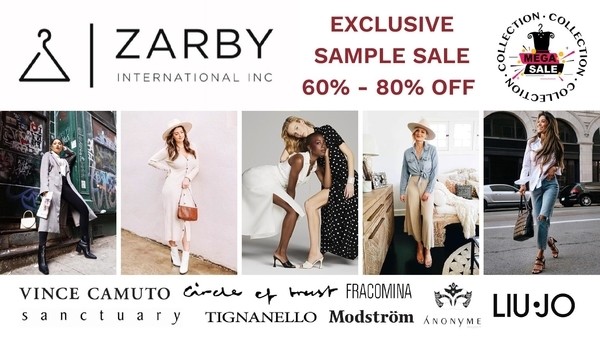 Zarby International Fall sample sale, September 23 to October 4, 2020! Save up to 80% on Vince Camuto, Modstrom, Fracomina, Liu Jo, Tignanello, Sanctuary plus selected pieces from the best of our many contemporary women's wear brands!