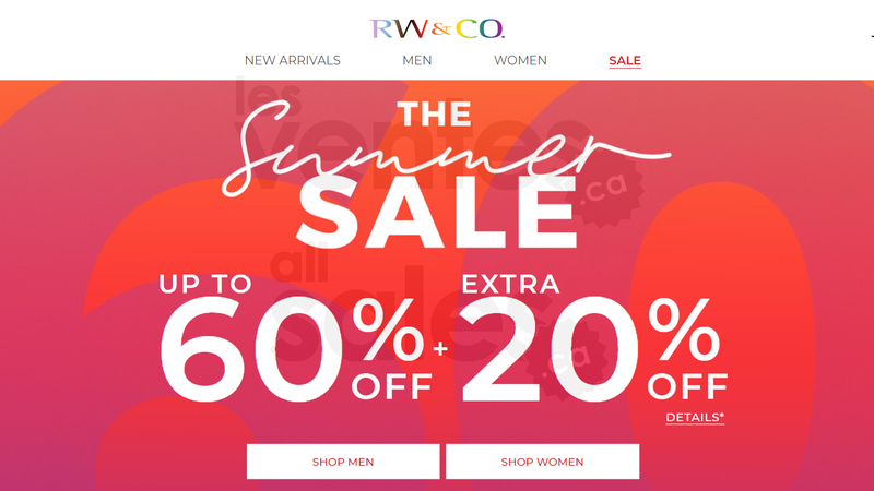 Take advantage of RW & Co summer sale! For a limited time only, get up to 60% off on selected styles plus an EXTRA 20% off!*