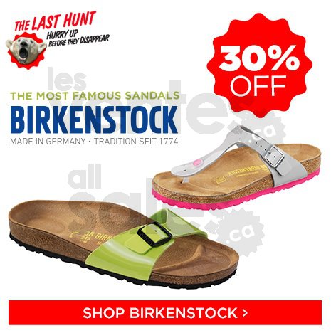The famous Birkenstock sandals just arrived on TheLastHunt.com at 30% off! On TheLastHunt.com you will also find winter jackets, clothing, accessories, sandals, shoes and winter boots for the whole family.