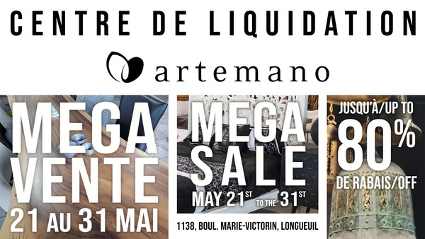 Come and take advantage of our mega sale at our liquidation center, from May 21st to May 31st! Up to 80% off!