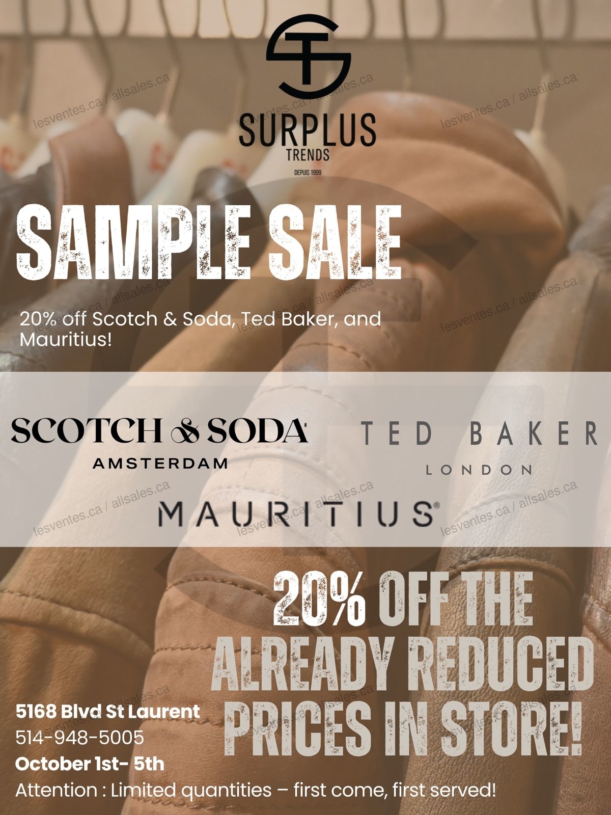 đ The SurplusTrends sample sale starts the first october! An extra 20% off all Scotch & Soda, Ted Baker*, and Mauritius samples.