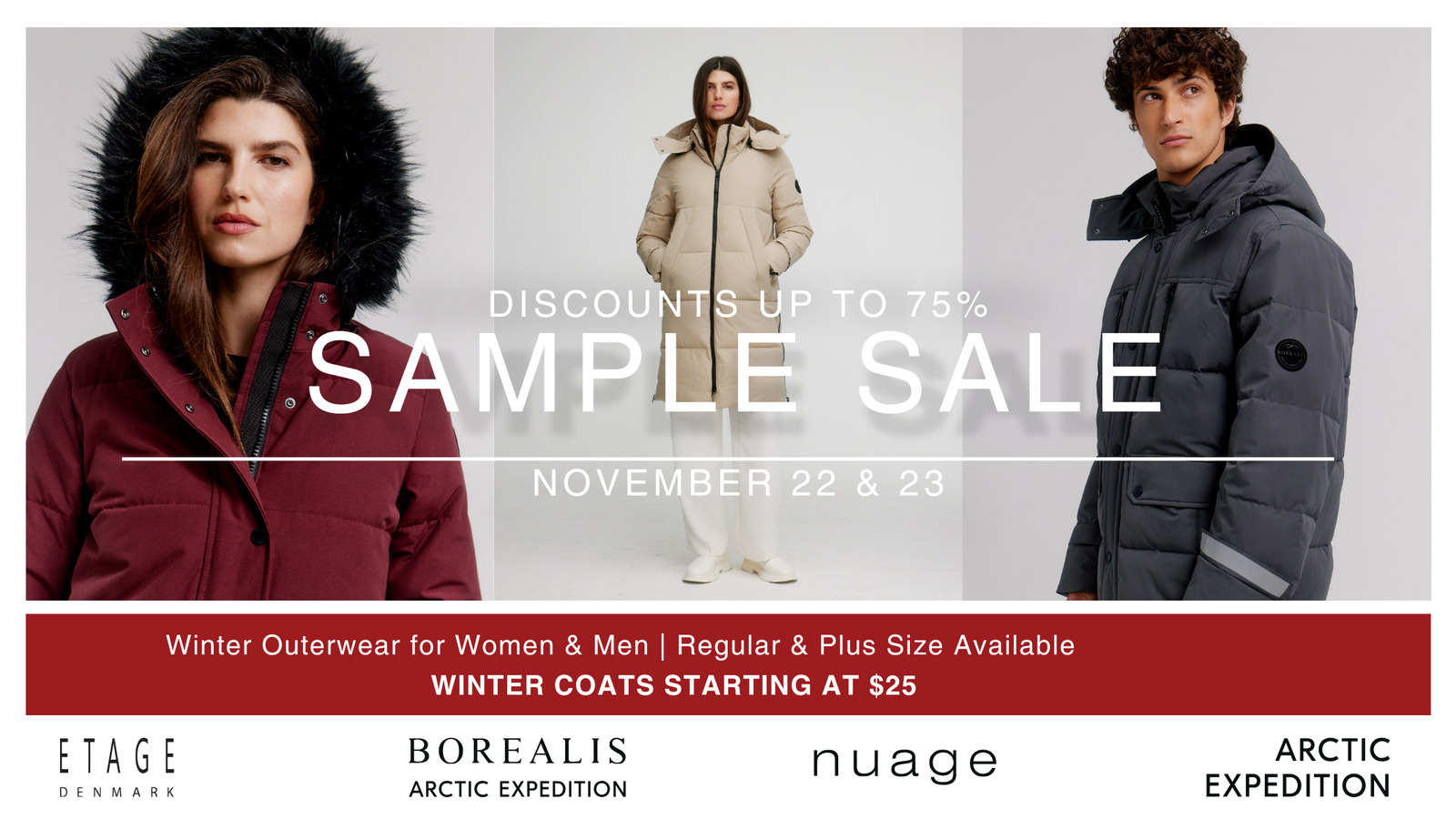 The Capital Garment Winter Sample Sale is finally here! Don't miss out on a large selection of outerwear from Arctic Expedition, Nuage, Etage Denmark & Borealis AE. Find winter down parkas, puffers, faux furs & much more. Discounts up to 75% off! More