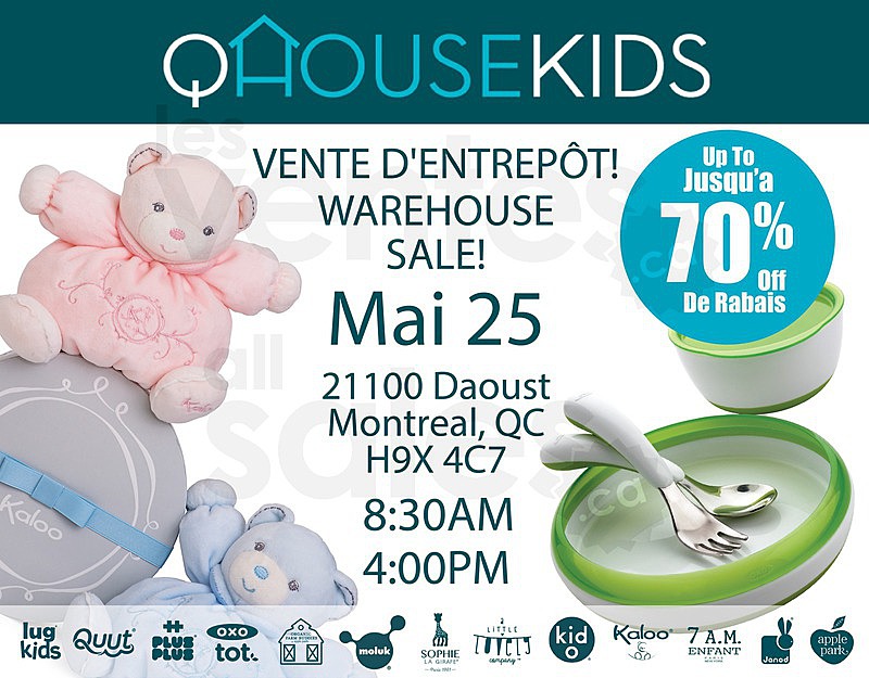 QHouse Kids warehouse sale - one day only - May 25th! Save up to 70% off a large selection of kid’s toys and baby’s accessories from Lug Kids, Moluk, 7 A.M. Enfant, Sophie La Girafe, Kaloo, Little Lovely Company, Oxo Tot and many others!