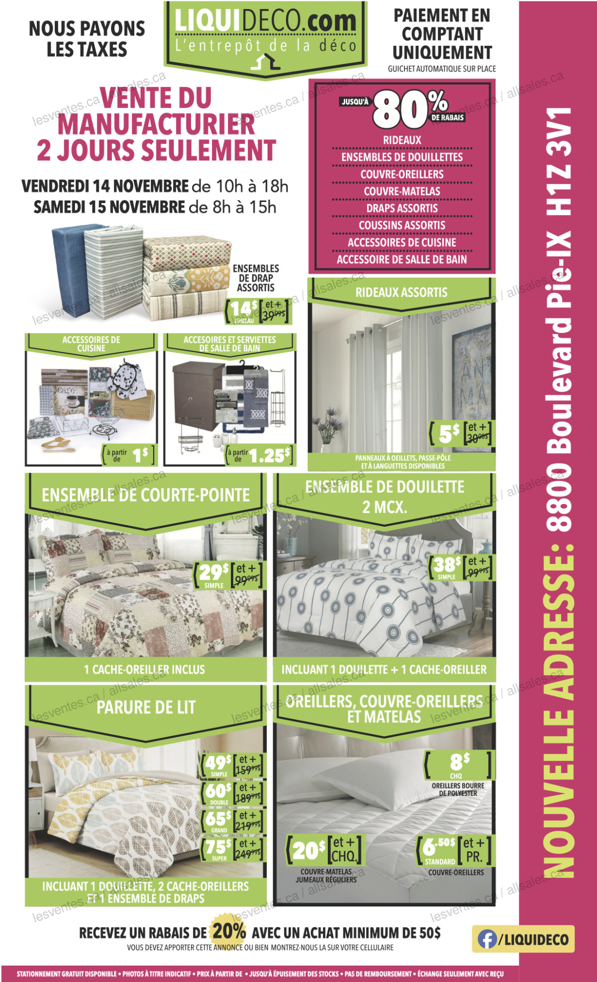 | Address | Liquidéco - Nouvelle adresse - 8800 Boulevard Pie-IX, Montréal (Québec) H1Z 3V1 Canada Google Maps |