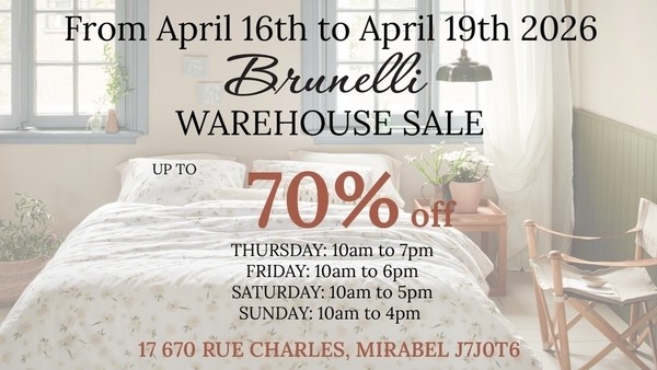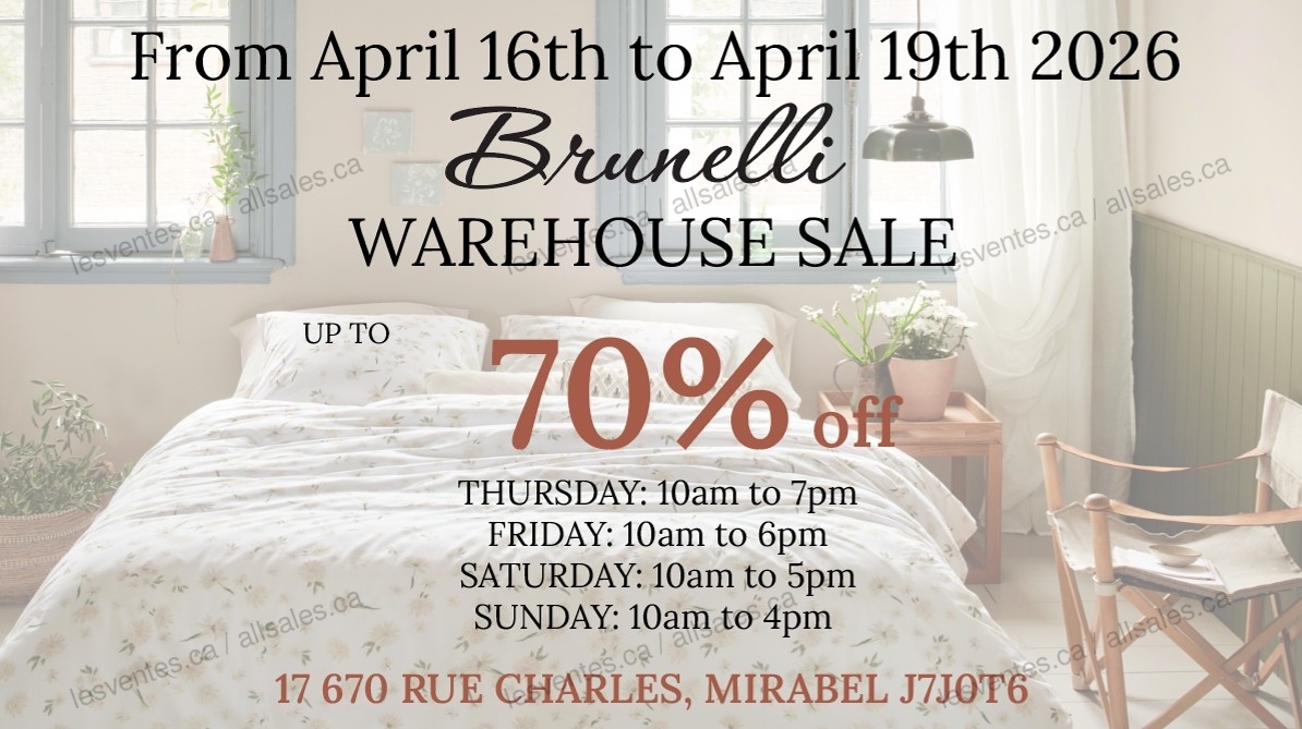 The Brunelli warehouse sale is coming, and we can’t wait to welcome you! From April 16 to 19, we’ll be opening our doors for 4 days only. Duvet covers, quilts, cushions, throws, and more — with discounts of up to 70%.