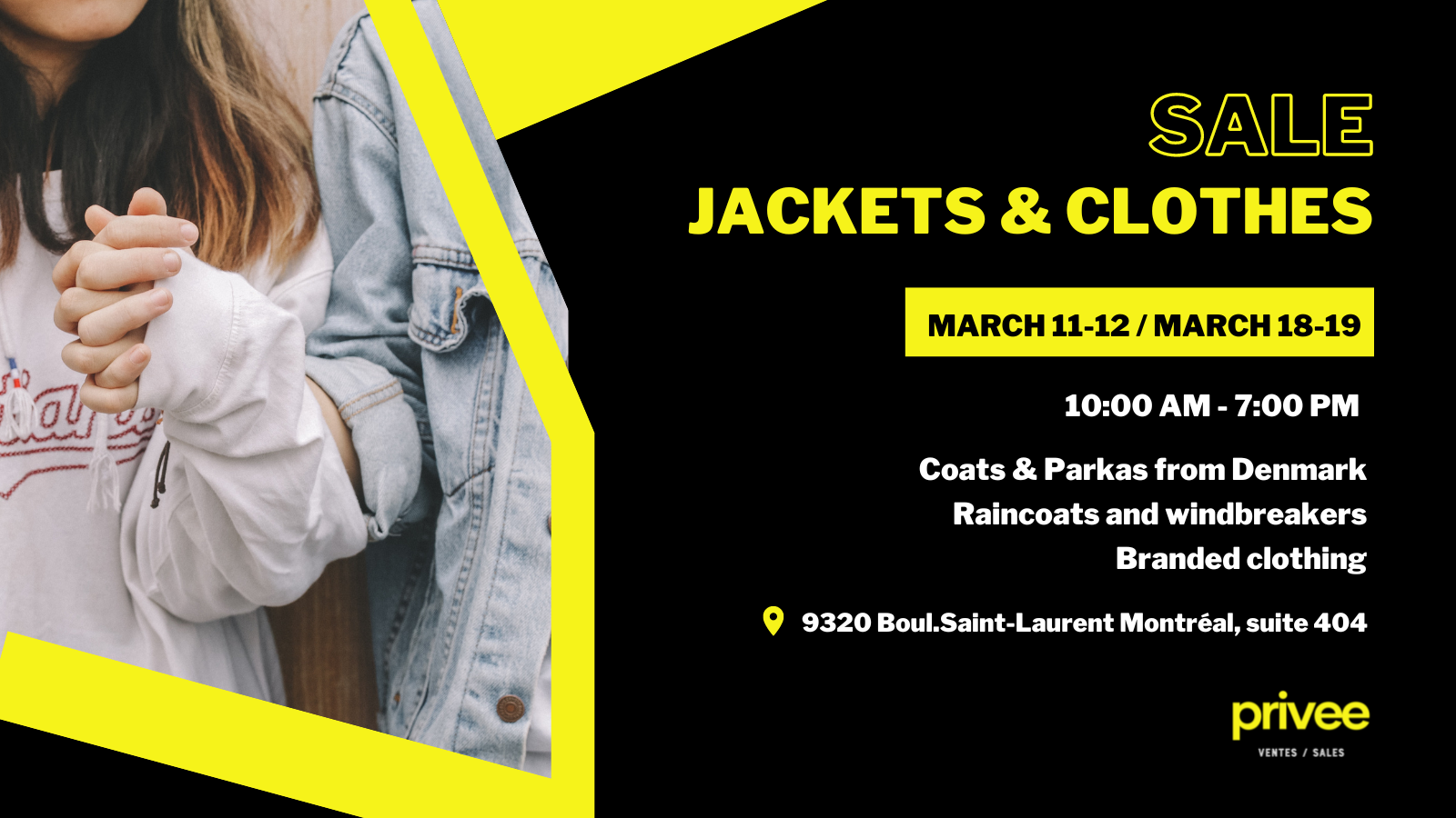 Vente Privée mega sale, March 11-12 and 18-19. Winter coats from Denmark: Parkas -20°C to -40°C from 80$ to 120$ (value of 400$), Coats from 40$ to 80$ (value of 250$), Raincoats and windbreakers 20$ to 40$!
