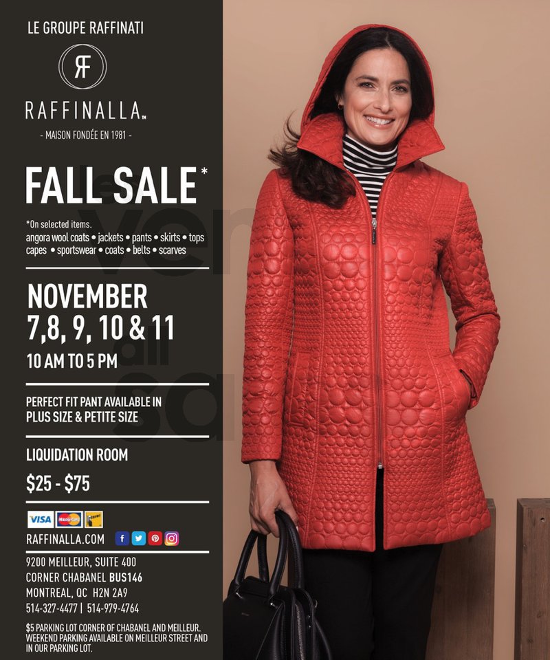 Back by popular demand! Sale Nov 7-11, save big on Women’s Fashion. Samples + overstock (all sizes available). PerfectFitPant, ComfortfFitLeggings, sportswear, coats, belts & scarves.