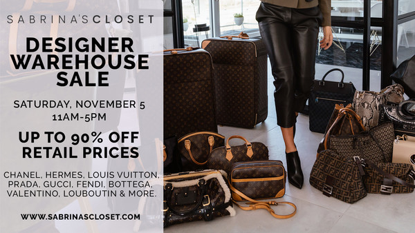1 DAY ONLY. Designer showroom sale with pre-owned designer bags, shoes, clothing & accessories from Chanel, Hermes, Louis Vuitton, Gucci, Fendi, Prada, Bottega Veneta, Louboutin & more. Up to 90% off retail prices. Exclusive reduced prices in store
