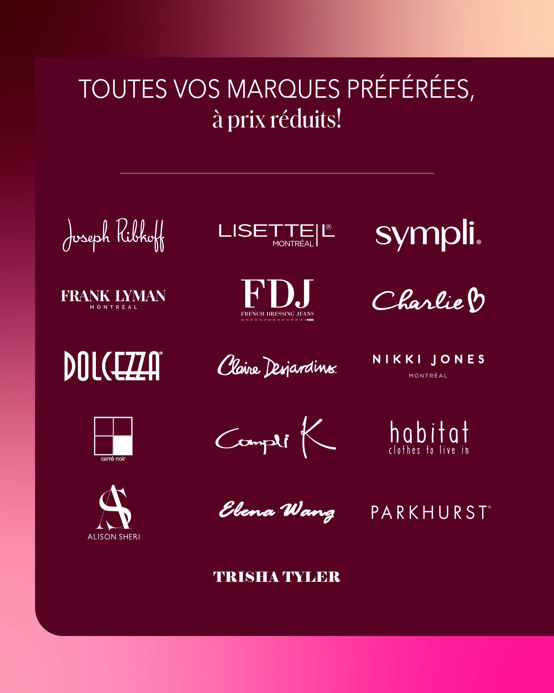 HUGE WAREHOUSE SALE, July 16 to 26 🤩 Up to 80% OFF on best Canadian brands for Women: Lisette L, Joseph Ribkoff, Frank Lyman, Sympli, French Dressing Jeans, Charlie B, Neon Buddha, Orly, Habitat & More