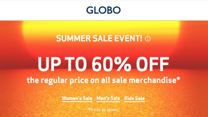 GLOBO summer sale event! UP TO 60% OFF the regular price on all sale merchandise* for women, men and kids.
