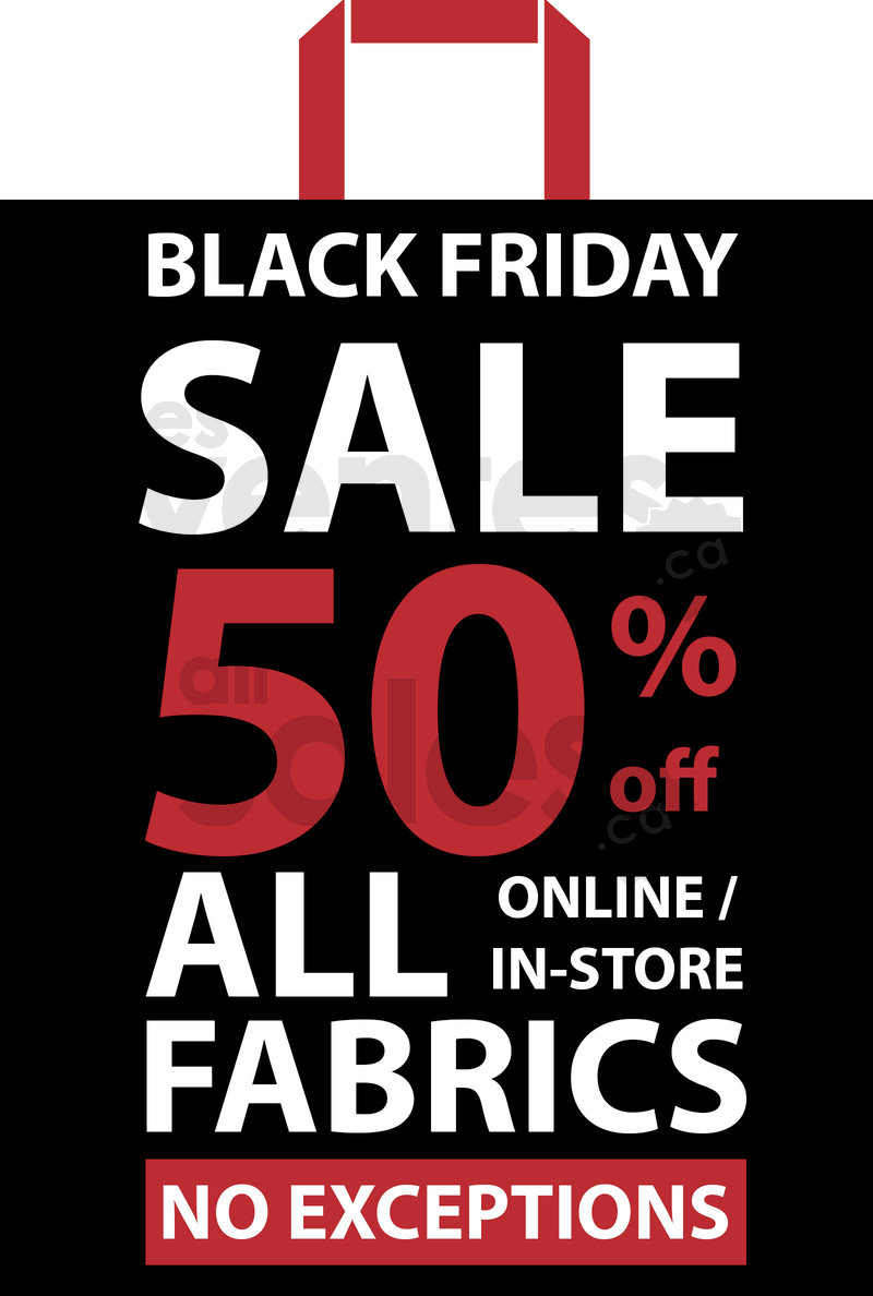 Fabricville is Canada’s #1 online fabric store. For one day only save 50% on in store and online fashion fabrics, outdoor, designer and drapery fabrics, vinyl, quilting cottons, flannelette and over 300 styles of fleece. All 50% off! No exceptions!
