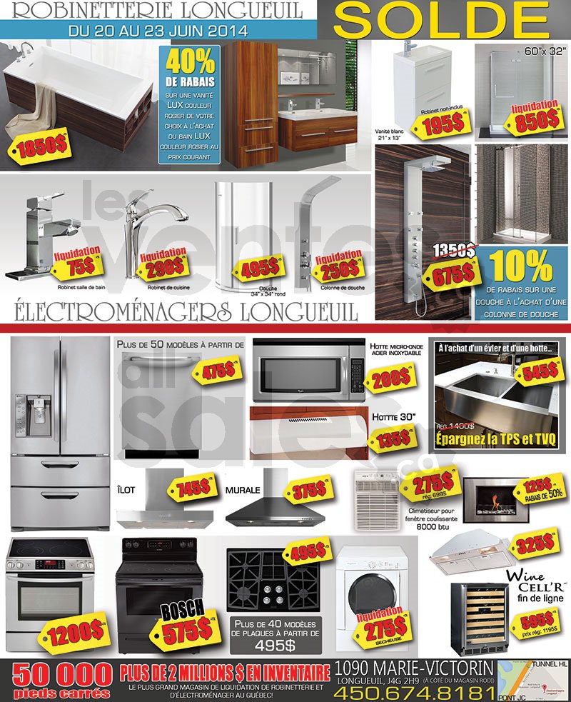 Huge sale at Robinetterie & Électroménagers Longueuil from June 20 to 23! Save up to 70% on several items during our liquidation sale. We have home appliances, baths, sinks, showers, faucets, vanities and much more. Hurry while quantities last!