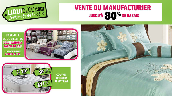 Manufacturer's sale - two days only - on June 17 and June 18 with discounts up to 80% off! Comforter sets from $20, standard pillows 2 for $13, bed sheets from $11, curtains from $5, assorted cushions from $3, kitchen & bathroom accessories.