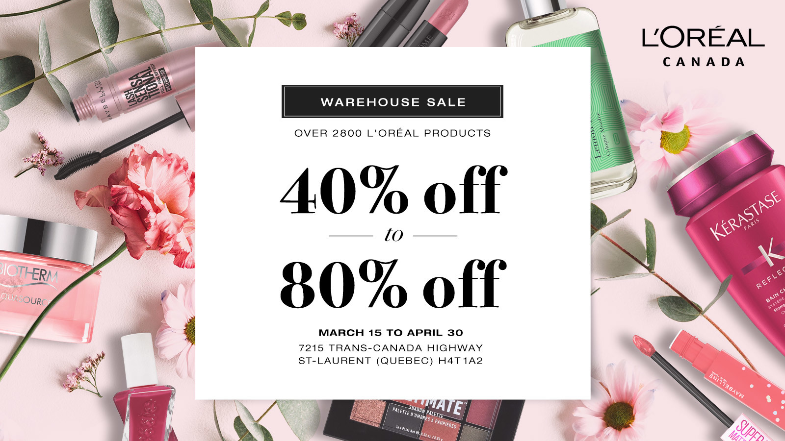 L'Oréal Canada's warehouse sale is back from November 1st to December 10! Sign up today and get your invitation in order to discover our special offers in store.