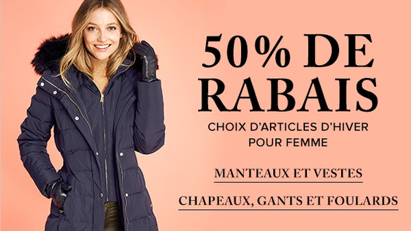 Winter sale at Hudson's Bay! Until January 26th only, save 50% off select women's cold weather essentials: coats & jackets, hats, scarves & gloves. Shop now!