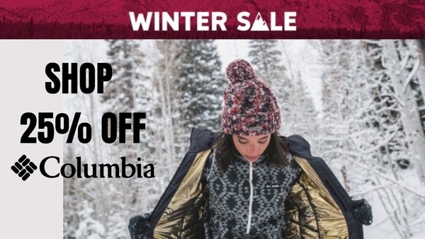 Winter Sale continues at Columbia! Shop the sale section and save up to 25% off on coats, sweaters, tops, pants and shoes for the entire family. Limited quantities, hurry!