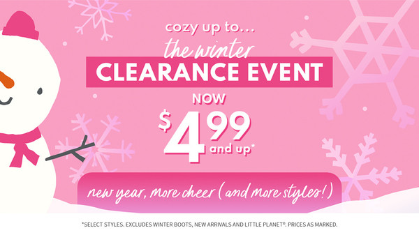 Cozy up to Carter's Oshkosh winter clearance event! New year, more cheer (and more styles!) at only $4.99 and up!*