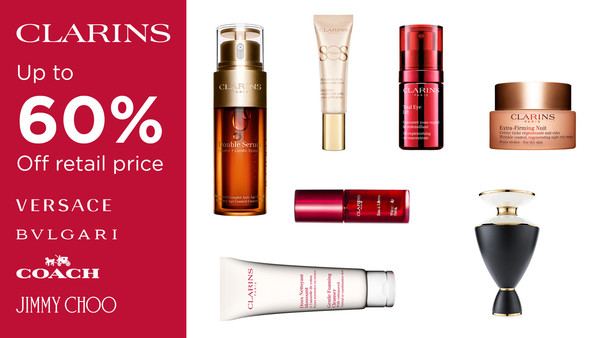 Enter to win one of the 500 VIP passes for the Clarins Virtual Warehouse Sale*! You can get up to 60% off our prestige cosmetics and perfume brands at unbeatable prices: Clarins, Versace, Bvlgari, Coach, Jimmy Choo…