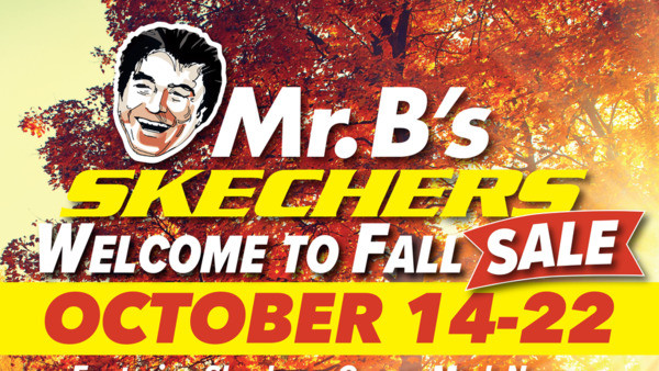 MR. B'S 3 day SKECHERS sale is back from October 14th to 22nd. Skechers, Guess, Mark Nason and other fashion boot & shoe brands! Warm & cozy vests, sweaters at unbeatable price points. Name-brand purses, halloween candy and more!