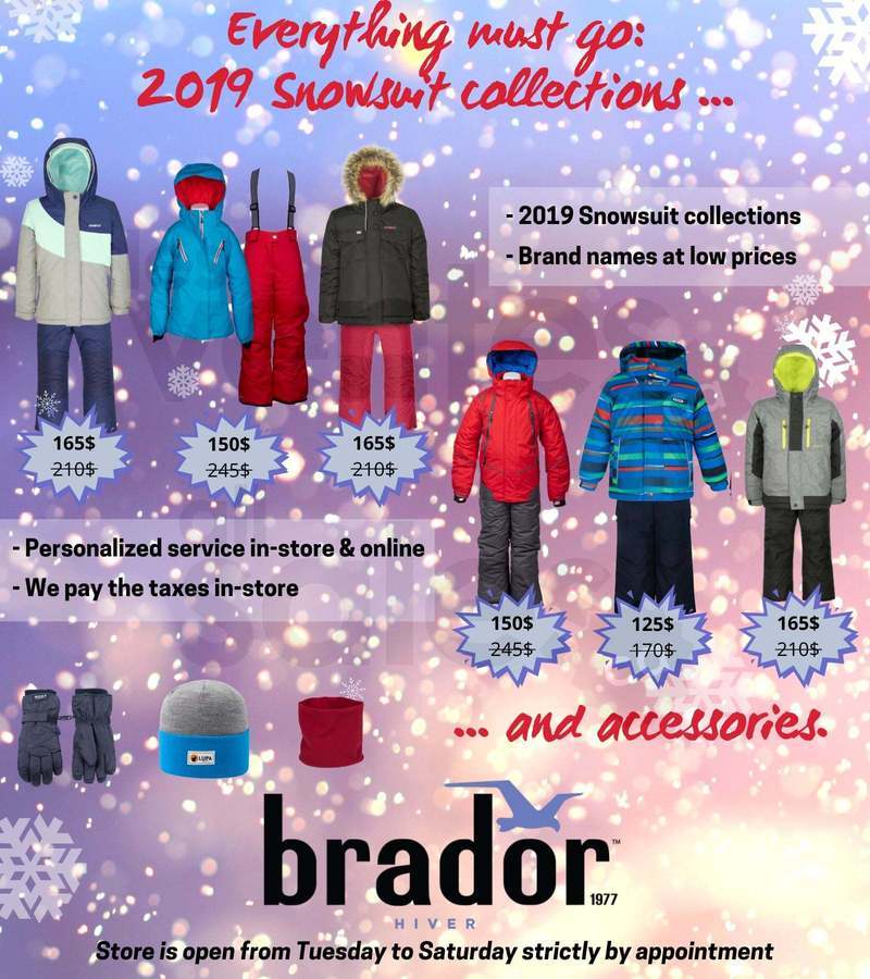 We are re-opening for our Summer Sale : everything must go ! Take advantage of the 2019 winter snowsuit collections, great prices, and personalized service. We pay the taxes in-store. It's discontinued: few sizes available, no restocking, so hurry!