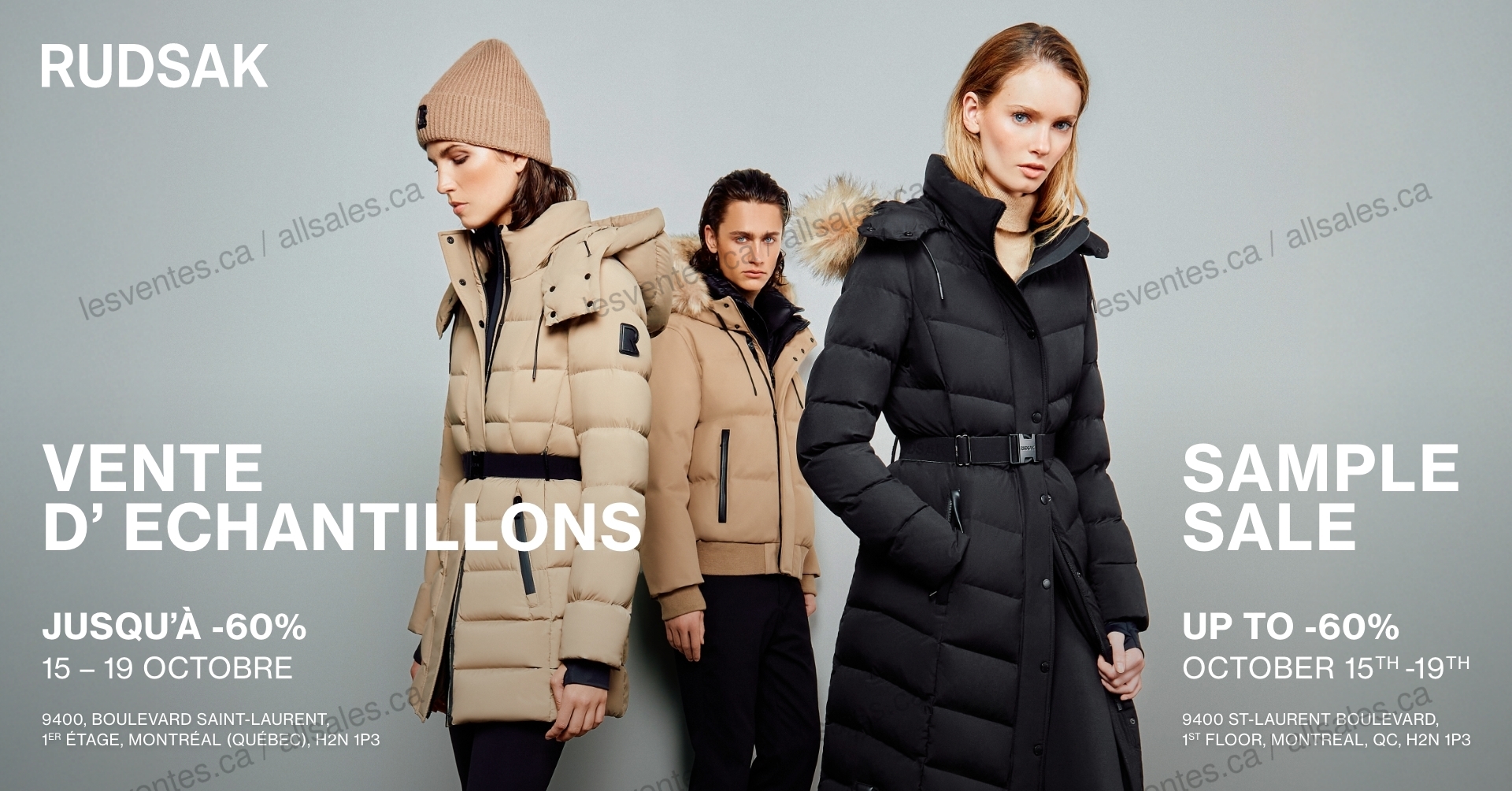 The RUDSAK Sample Sale returns from October 15th to 19th, 2025. Up to 60% off select styles, perfect for refreshing your fall wardrobe in time for the season.