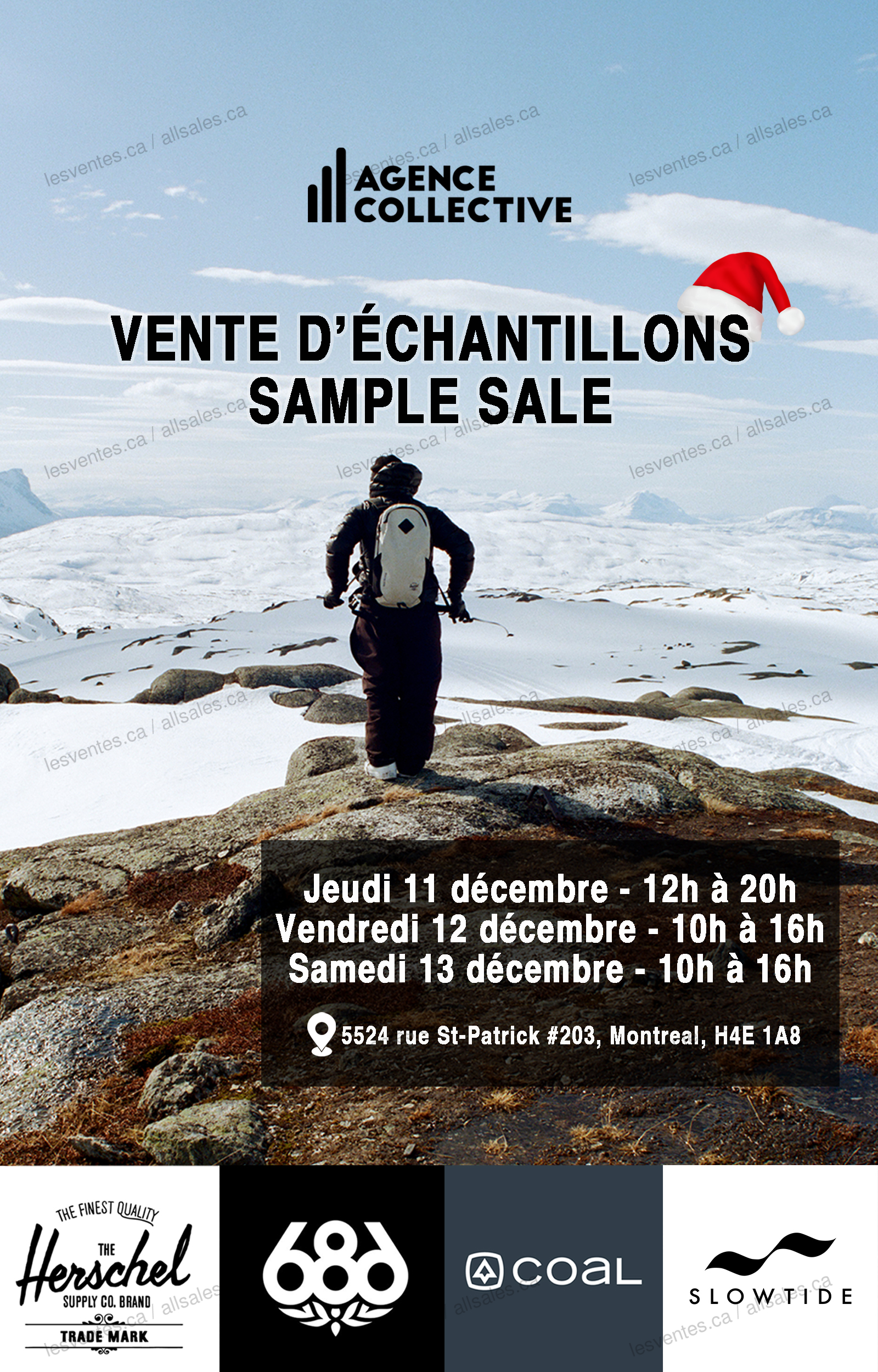 Don't miss the Agence Collective sample sale, December 11-12-13, 2025. Save on the following brands: - 686 Outerwear - Herschel - Coal - Slowtide -