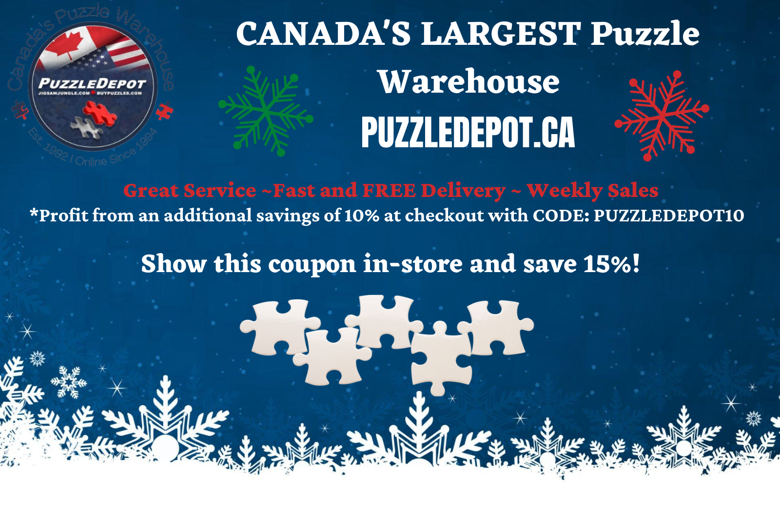 Shop our selection of 100,000 + jigsaw puzzles, games and accessories from the world's top brands piled high on 2 floors! Receive 15% off instore when mentioning this ad! Save 10% on your online purchase by using promo code: PUZZLEDEPOT10 at checkout