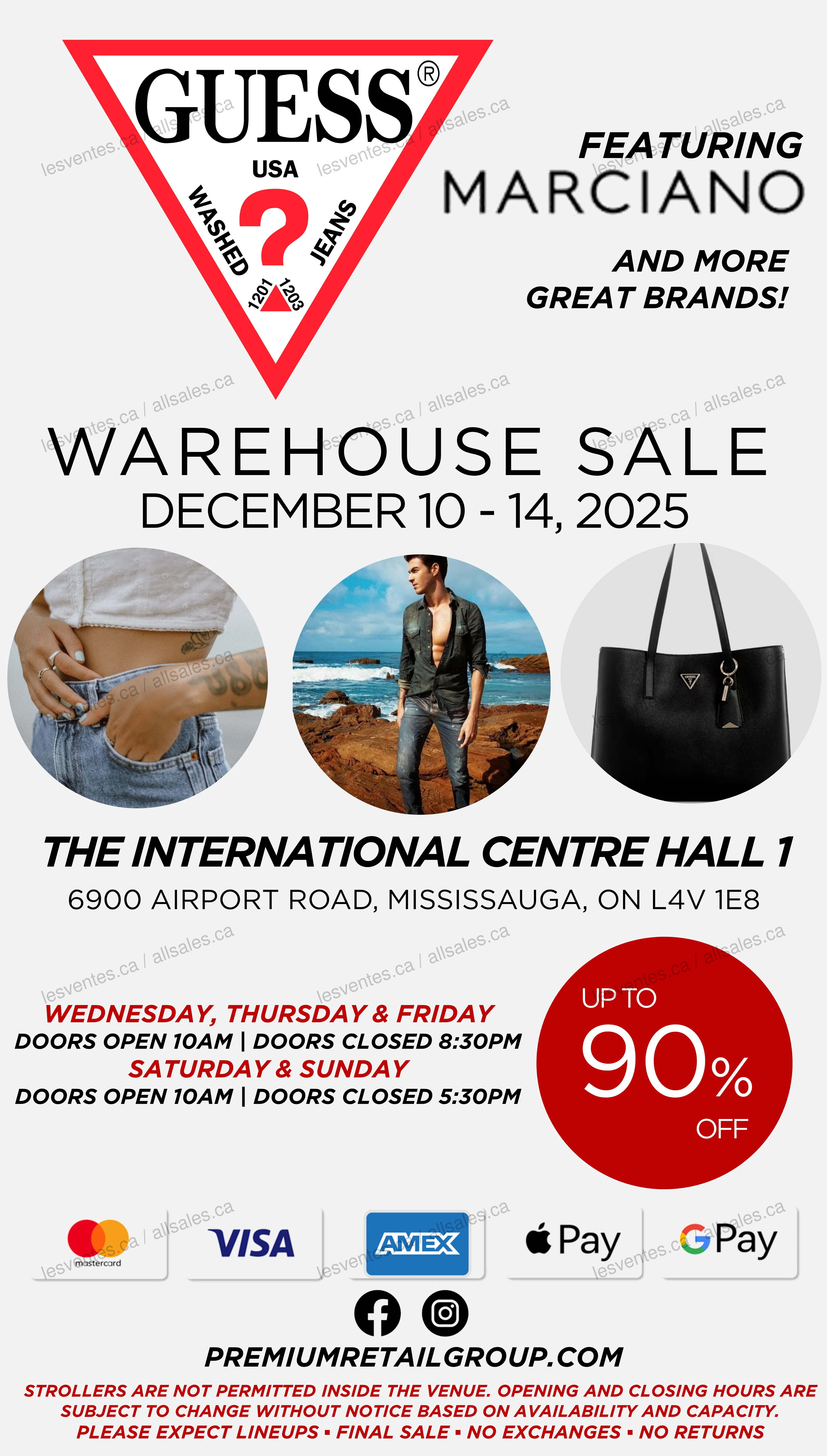 The Guess Warehouse Sale — featuring MARCIANO and other top brands — returns to Toronto from December 10 to 14. Enjoy incredible savings with discounts of up to 90% off.