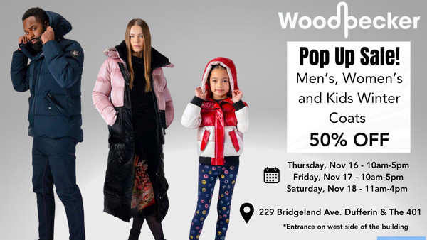 The Woodpecker's pop up sale comes in perfect timing! Get 50% off men's, women's and kid's winter coats at this fantastic pop up sale.