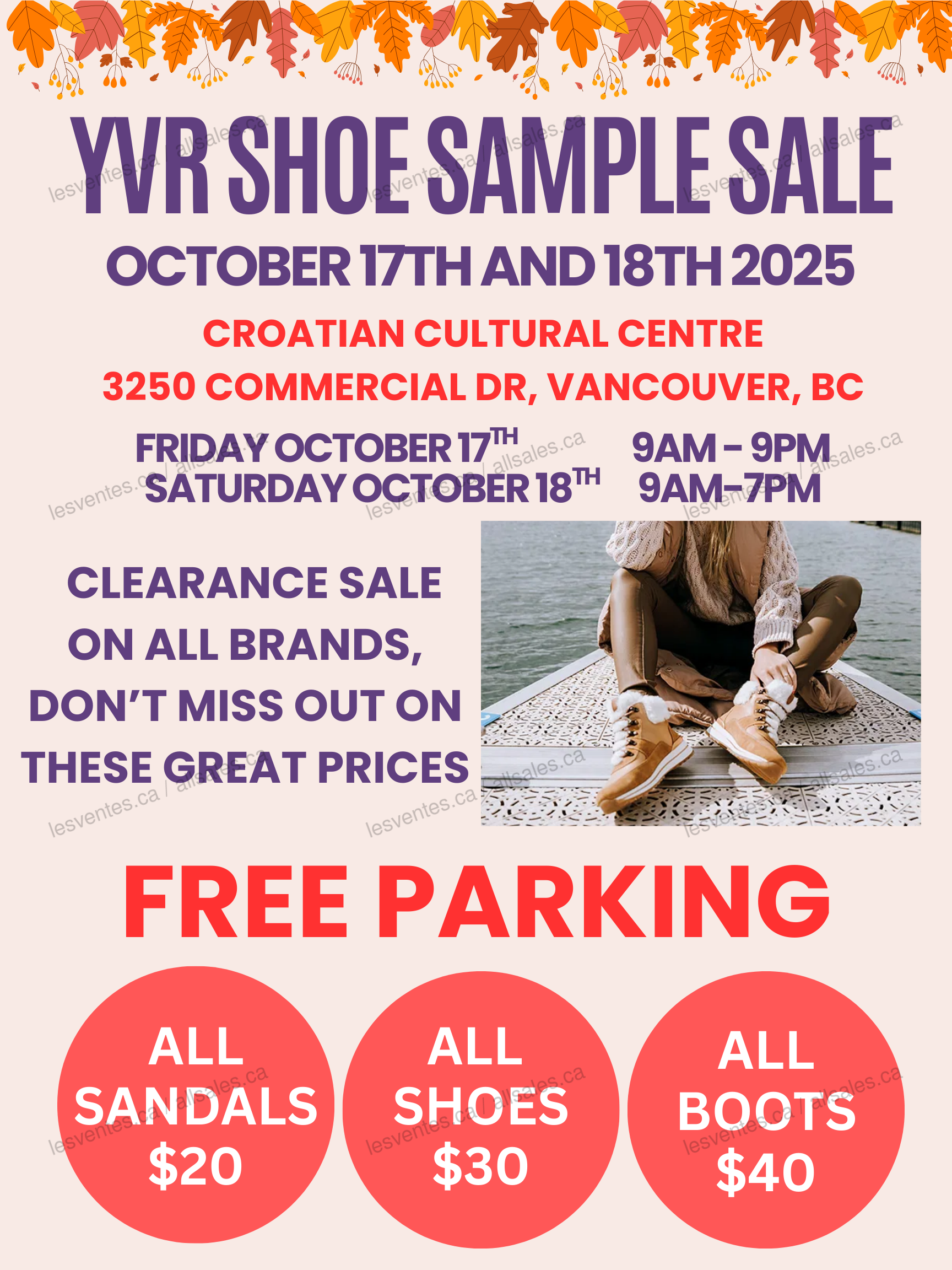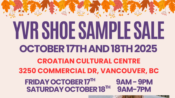 It's the YVR shoe sample sale in Vancouver, October 18 & 19. All women's sandals will be $20, shoes will be $30 and boots will be $40 - they'll have a range of sizes available.