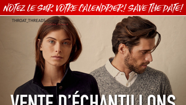 Throat Threads Apparel fall sample sale event in Montreal 3 days only, on November 8-9-10! Save on men's & women's designer apparel and men's footwear. Featuring: NYDJ, Parker, Brax, Robert Graham, Hudson, John Varvatos, Base London.