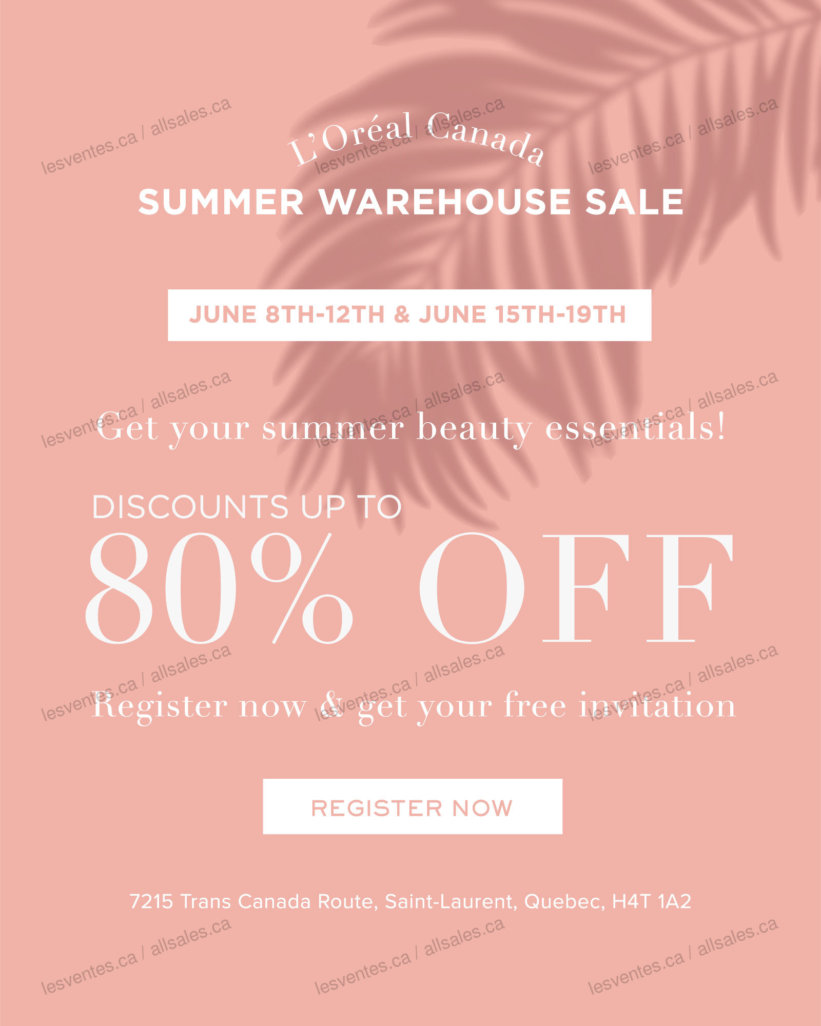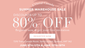 L'Oréal Canada's warehouse sale is back on June 8 to 12, and June 15 to 19. The Beauty Outlet is a warehouse sale by L'Oréal Canada that is held several times a year.