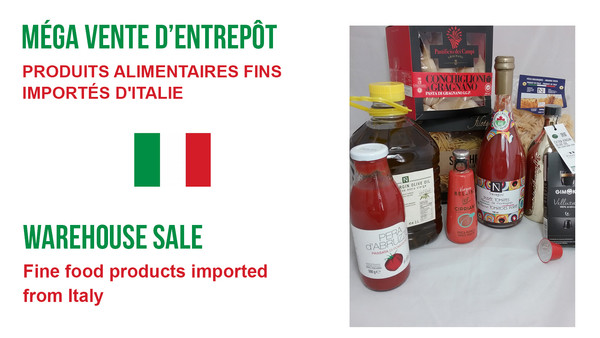 Save during the Mega Warehouse Sale, November 26-27-28, 2021. Buy directly from the importer at wholesale prices. Make big savings & enjoy the olive oils, balsamic vinegar, panettone, coffee, pasta, gift baskets, olives, condiments, conserves & more!
