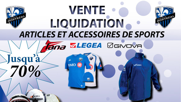 Soccer liquidation center - Up to 70% off official products of Montreal Impact! Track suits from 19.95$, soccer balls from 4.95$, soccer shoes from 9.95$, winter coats from 29.95$, rain coats from 14.95$ and much more choices.