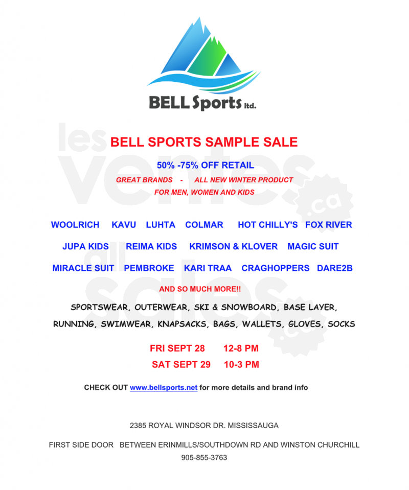 Bell Sports Samples Sale from September 28th and 29th in Mississauga! Save 50% to 75% off on men, women and kids sportswear, ski & snowbords, bags, wallet, gloves and so much more!