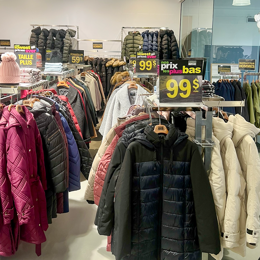 Get up to 80% off coats at the Manteaux Manteaux warehouse sale. Winter coats on liquidation starting at 99$, clothing 70% off, and styles from brands Point Zero, Sicily, Saki, Sokos & Oxygen. Shop discounts for women, including plus sizes, and men.