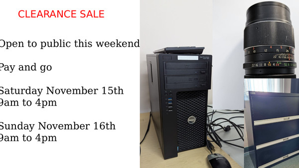 Computers, monitors, office furniture and accessories, photography, decors, electrical, tools, audio and more. EVERYTHING must go!! More