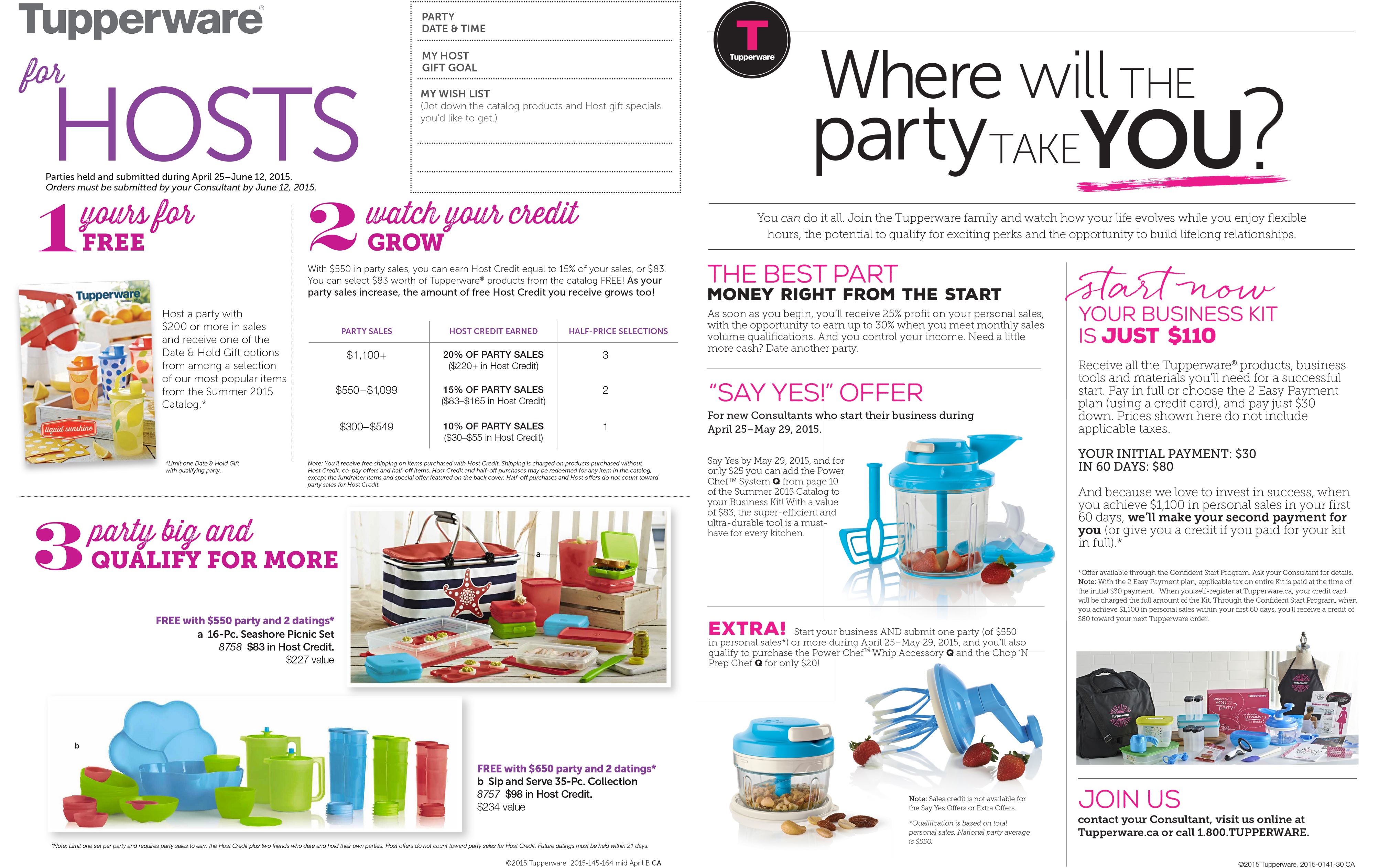 Tupperware is celebrating 68 years of partys! Receive $700 in product for $56 only*. Kid's party set $24 ($35.50 value), Petite Dessert dishes $15 ($22 value). Do not miss more great savings in our new brochure in effect from April 25 to May 29.