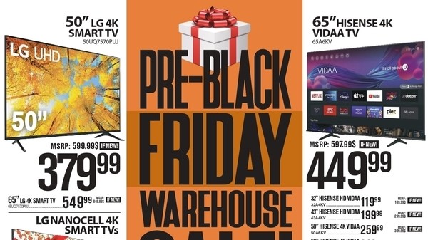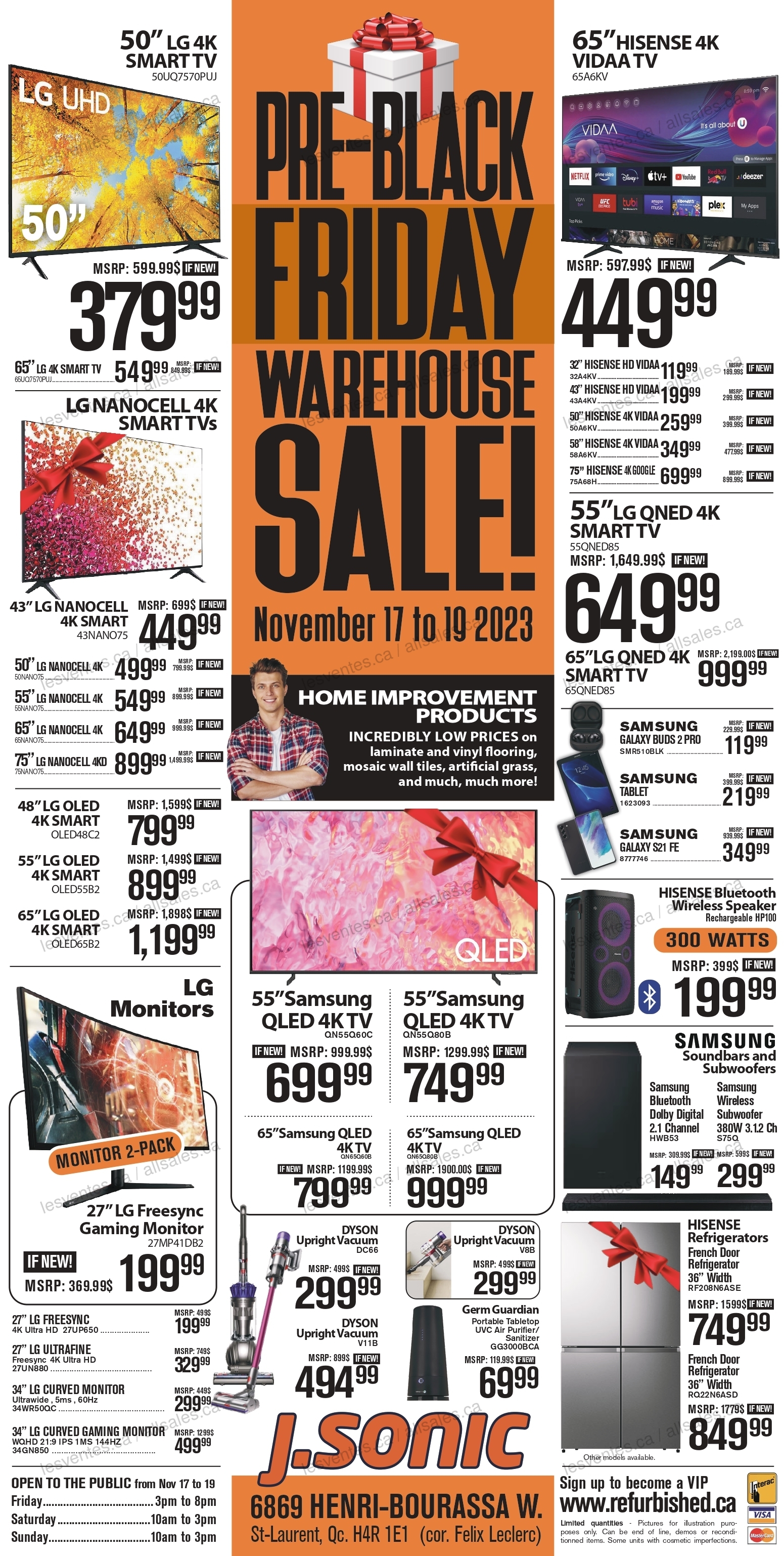 Pre-Black Friday warehouse sale at J. Sonic, November 17th to 19th! Shop crazy deals on smart televisions, Apple watches, tablets, soundbars, bluetooth speakers, vaccums & much more! Samsung, Apple, LG, Hisense, DYSON, SONY & other brands.