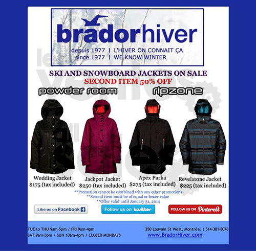 Tired of being cold? At Brador Hiver, our mission is to guarantee warmth, comfort and functionality for our cold Quebec winters! Get a second item at half price*.