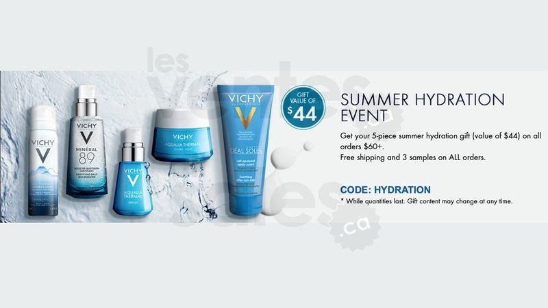 Vichy online promo! Get 10$ off $60 or 20$ off $80 and more orders at Vichy Canada! Get a Free Bag and Free shipping. Use code SUMMER at checkout. Valid 7/16 - 7/29.