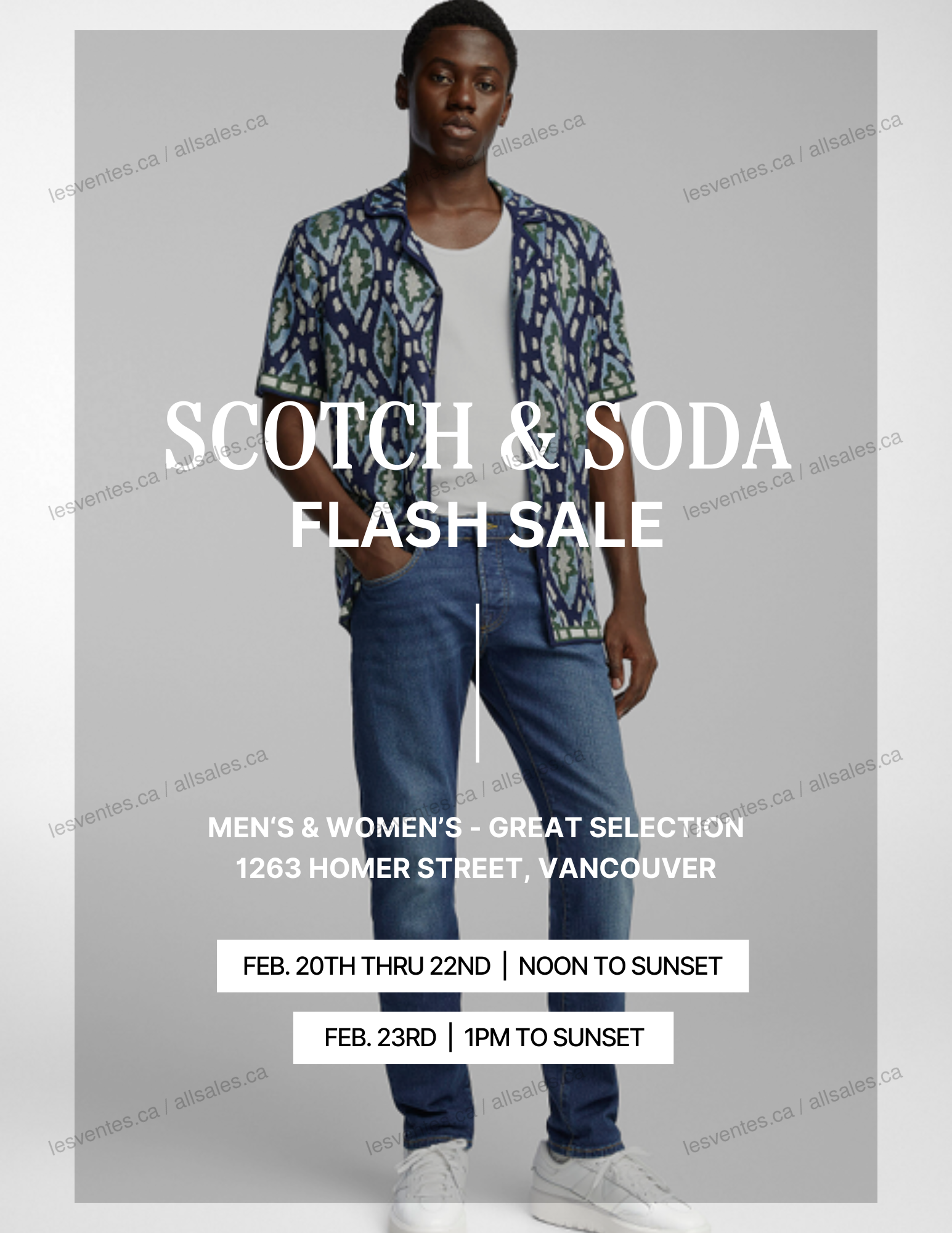 Scotch & Soda men's and women's clothing flash sale, February 20 and 23, in Vancouver.